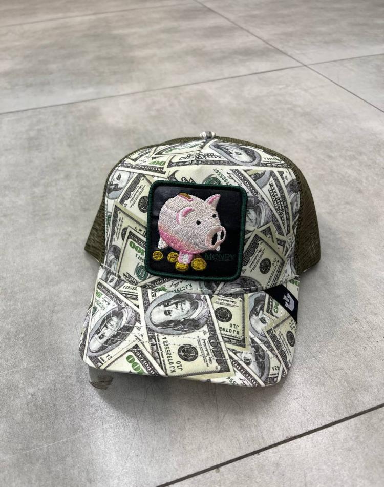 کلاه گورین طرح MONEY یکی از مدل‌های جذاب و متفاوت از این برند است که با استفاده از طراحی منحصر به فرد و رنگ‌بندی خاص توجه هر بیننده‌ای را جلب می‌کند. روی کلاه، طرح اسکناس‌های دلار با رنگ‌های سبز و خاکی به‌طور کامل نقش بسته است که جلوه‌ای خاص و مدرن به آن داده است. علاوه بر این، پچ گرافیکی با طراحی یک خوک پولی که بر روی کلاه قرار گرفته، به این کلاه ویژگی متفاوتی بخشیده که نمادی از ثروت و موفقیت است.