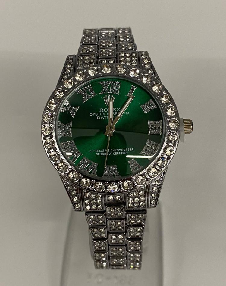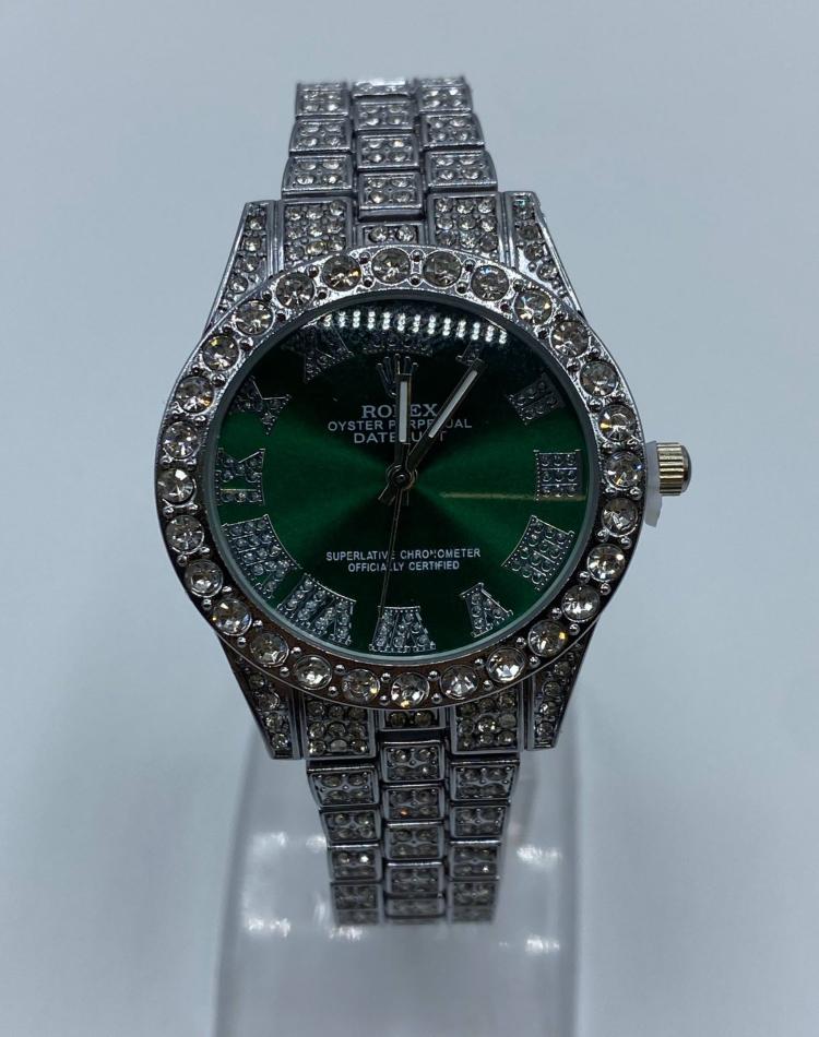 ساعت فول نگین طرح رولکس نقره ای صفحه رنگی کد04
