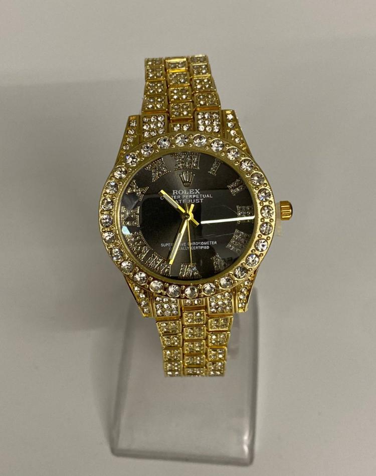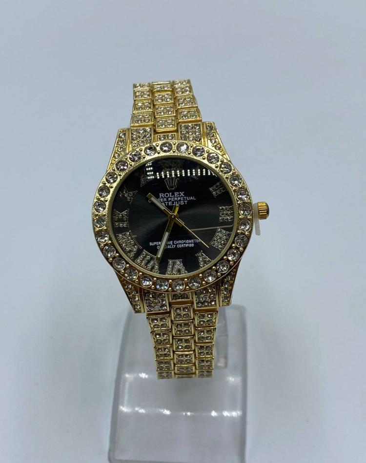 ساعت فول نگین طرح رولکس طلایی صفحه رنگی کد06