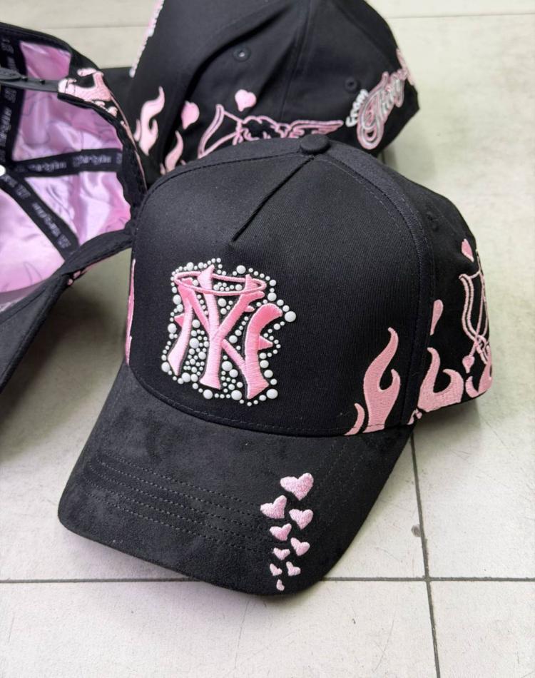 بغل کلاه  سمت گلدوزی برجسته طرح اتیش صورتی رنگ