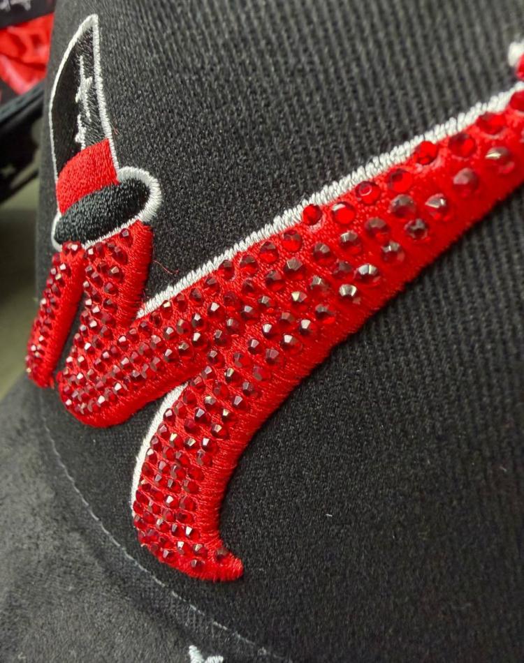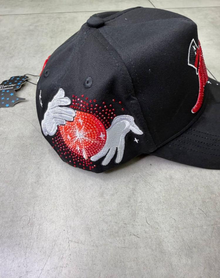 سمت چپ کار گلدوزی قرمز و سفید دست جادوگر و نگین کاری شده