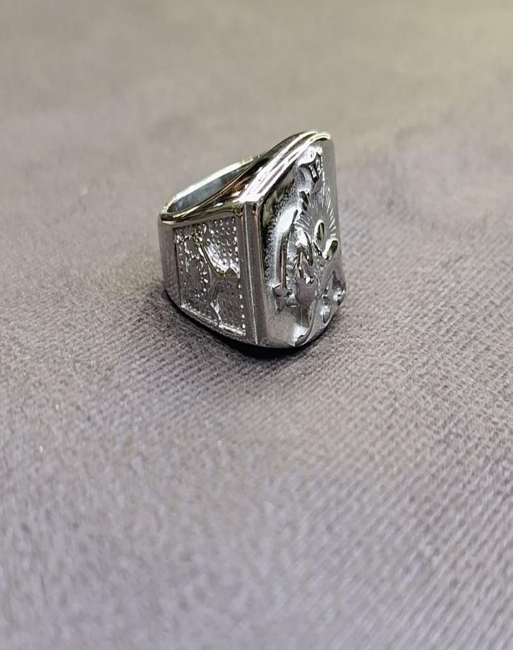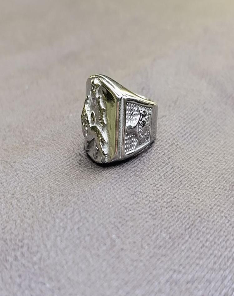 انگشتر استیل نقره ای طرح شیر وخورشید کد155